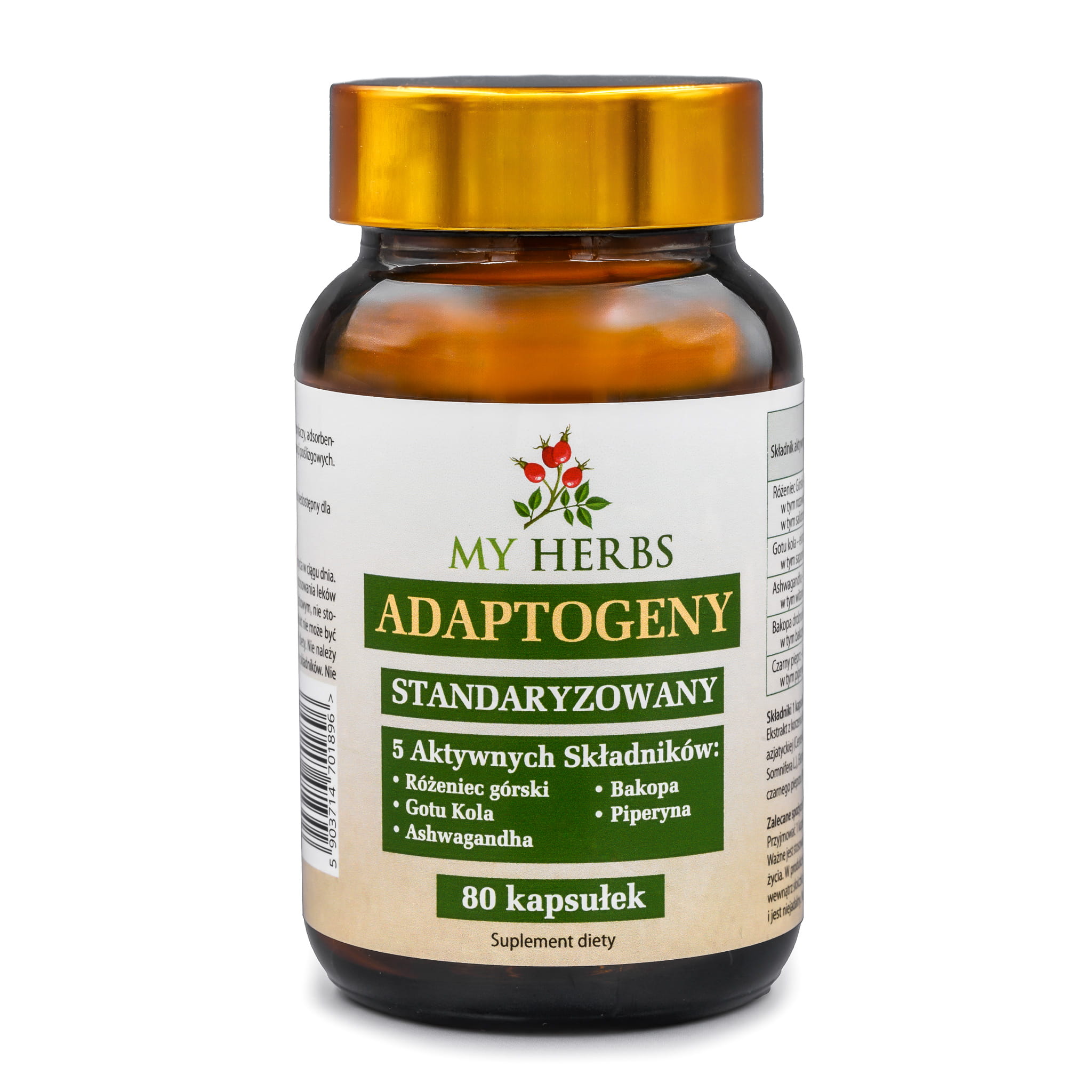 ADAPTOGENY to produkt, w którym połączono siłę pięciu aktywnych składników, które wspierają organizm w trudach współczesnego życia. Czynniki, które negatywnie wpływają na poziom naszego życia takie jak stres, nerwy, problemy rodzinne, kłopoty, a przede wszystkim szybkie tempo życia mają zły wpływ na zdrowie. Każdy z nas potrzebuje odpoczynku, chwili spokoju, czasu dla siebie, aby móc zregenerować się i nabrać energii na kolejny dzień. Niestety w pogoni za codziennymi obowiązkami nie zawsze możemy znaleźć na to czas. Dlatego stworzyliśmy suplement diety gdzie połączyliśmy naturalną siłę ekstraktów roślinnych i adaptogenów, które po ciężkim dniu pomogą w regeneracji i wydajnym odpoczynku.