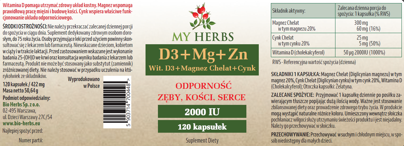 D3 + MG + ZN WITAMINA D3 + MAGNEZ + CYNK 120 KAPSUŁEK