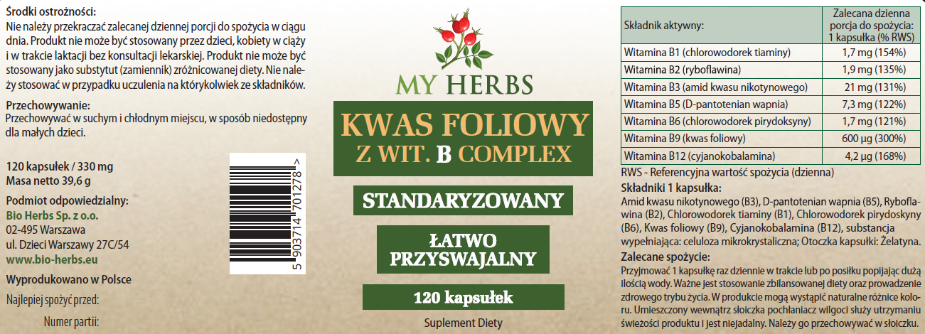 KWAS FOLIOWY Z WITAMINĄ B COMPLEX 120 KAPSUŁEK