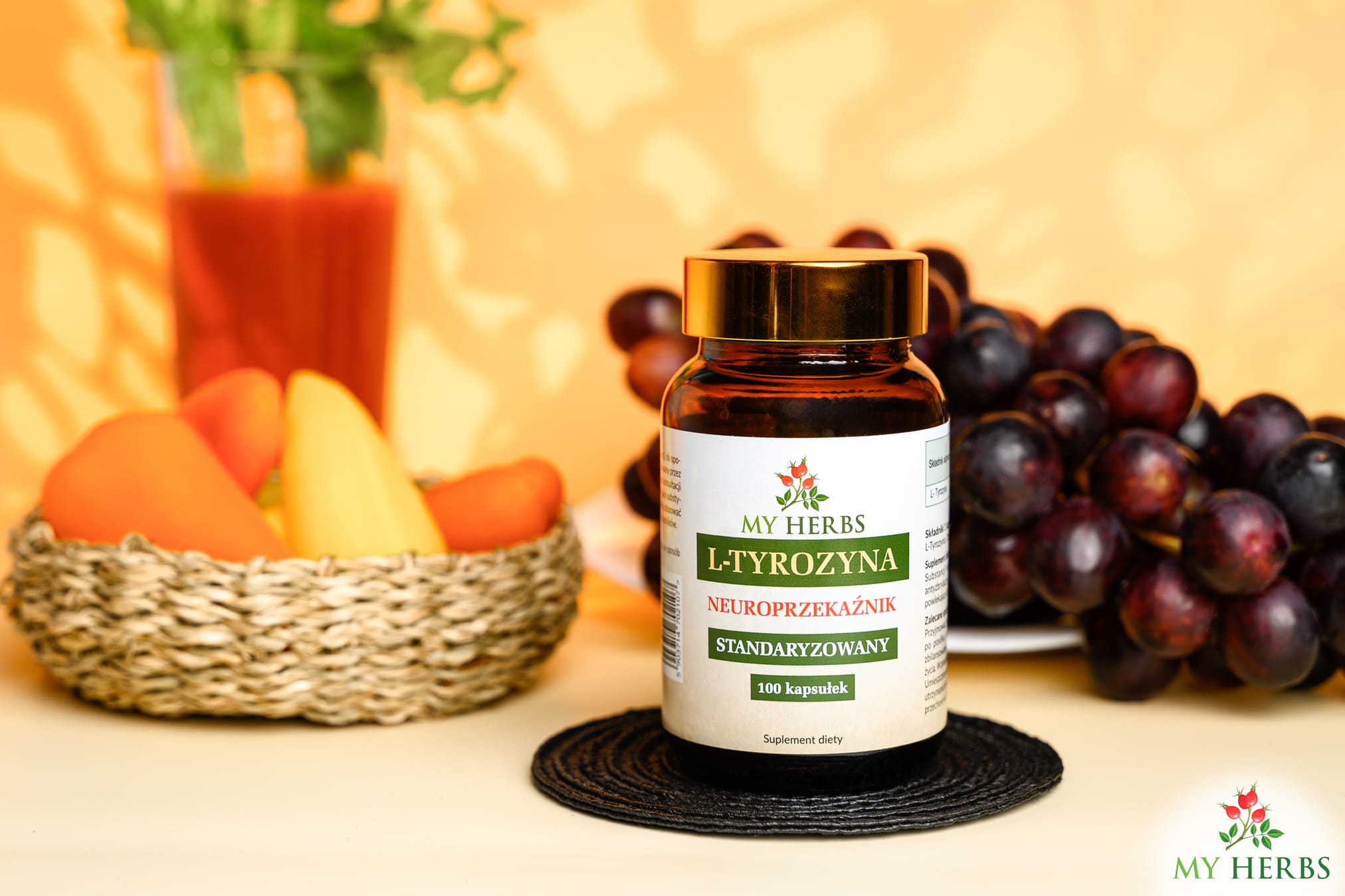 L-Tyrozyna; Otoczka kapsułki: Żelatyna.
