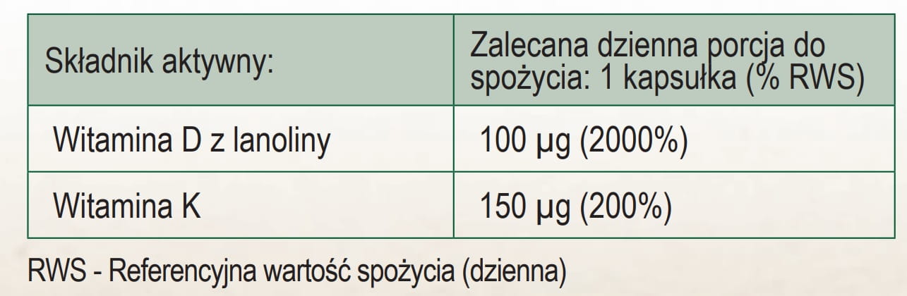 Witamina D w połączeniu z K jest unikalnym kompleksem witaminowym, który powinien być przyjmowany właśnie w takim połączeniu ponieważ brak witaminy D powoduje nieskuteczne działanie K. Innymi słowy, niezależne od ilości witaminy K pozyskiwanej czy to z suplementów diety czy z pożywienia, jedynie w zestawieniu z D daje ona pożądane efekty. Dlaczego witamina K w postaci MK-7 ponieważ jest to forma najlepiej przyswajalna przez organizm, która nie dopuszcza do powstawania tzw. „paradoksu wapnia” (nadmiaru wapnia w tętnicach przy jednoczesnym braku w kościach).