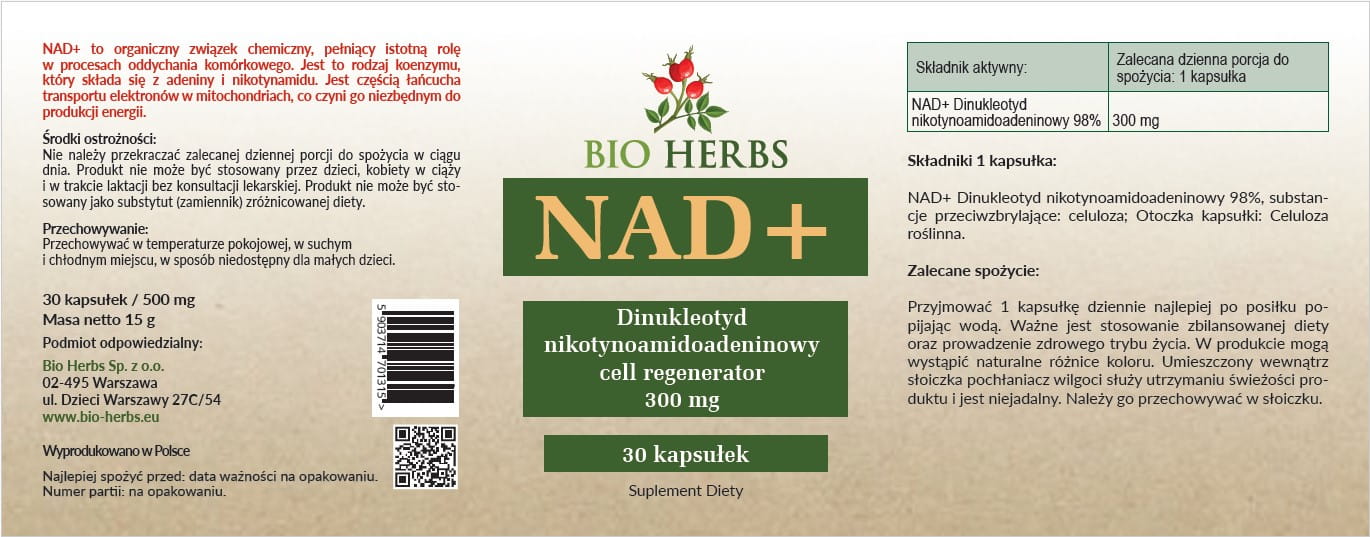 NAD+ Dinukleotyd nikotynoamidoadeninowy cell regenerator 300mg 30 kapsułek