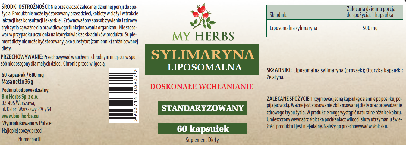 SYLIMARYNA LIPOSOMALNA, DOSKONAŁE WCHŁANIANIE, STANDARYZOWANY, 60 KAPS.