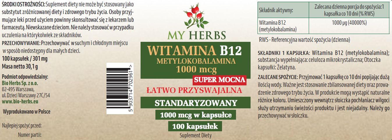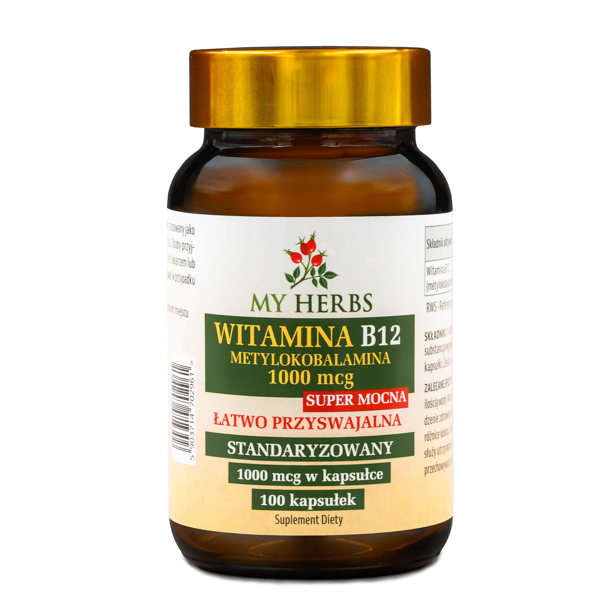 WITAMINA B12 METYLOKOBALAMINA 1000 MCG STANDAR ŁATWO PRZYSWAJALNA 100 KAPS