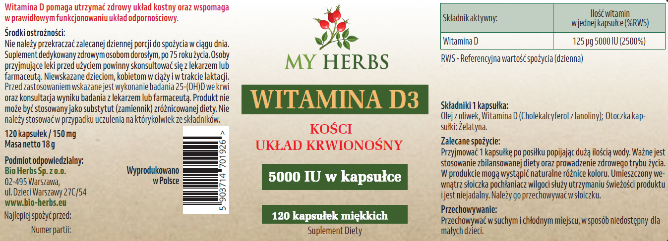 Witamina D nazywana często „witaminą słońca” jest rozpuszczalna w tłuszczach i ma ogromny wpływ na zdrowie każdego człowieka. Jej głównym zadaniem jest regulowanie gospodarki wapniowo-fosforanowej. Naturalnie witamina D jest syntetyzowana w skórze pod wpływem promieni UV. Natomiast z wiekiem gdy skóra się starzeje jej produkcja jest coraz mniejsza. Dlatego należy ją dostarczać w diecie co nie jest sprawą łatwą lub suplementować. Doskonałym produktem nadającym się do suplementacji jest nasz suplement Witamina D3 5000 IU w postaci żelowych kapsułek, w których w oliwie z oliwek jest rozpuszczona witamina naturalnego pochodzenia, która jest dzięki temu lepiej przyswajana przez organizm człowieka.
