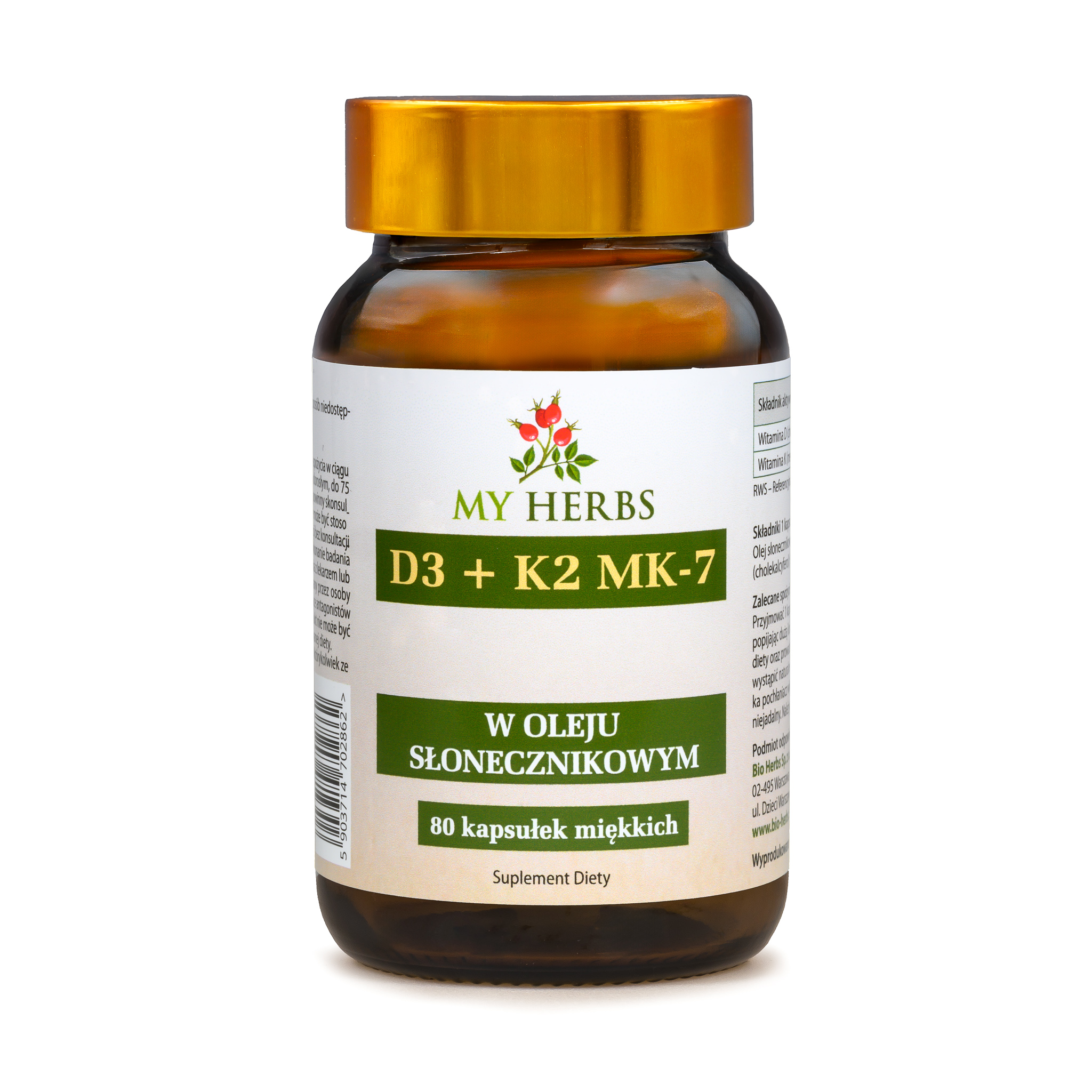 WITAMINA D3+K2 MK-7 W OLEJU 80 KAPSUŁEK MIĘKKICH ODPORNOŚĆ, KOŚCI, ZĘBY