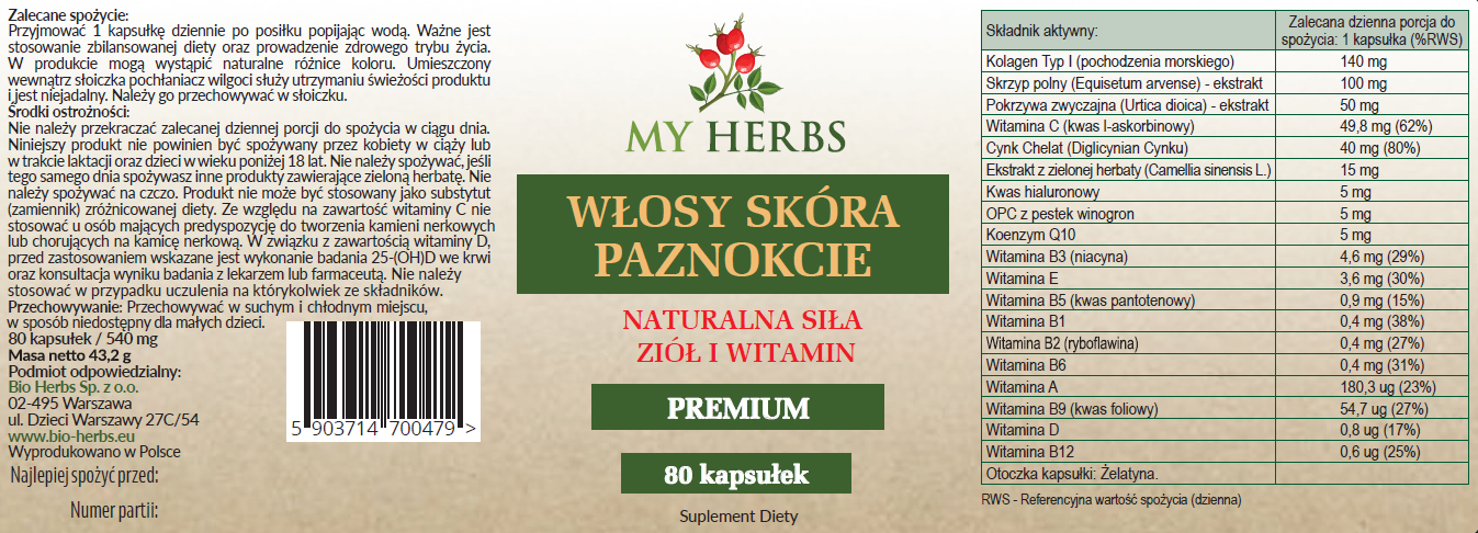 WŁOSY SKÓRA PAZNOKCIE 80 KAPS.