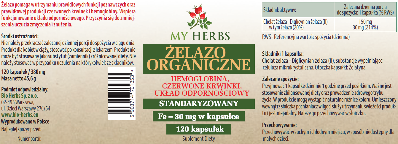 ŻELAZO ORGANICZNE 30 MG 120 KAPSUŁEK